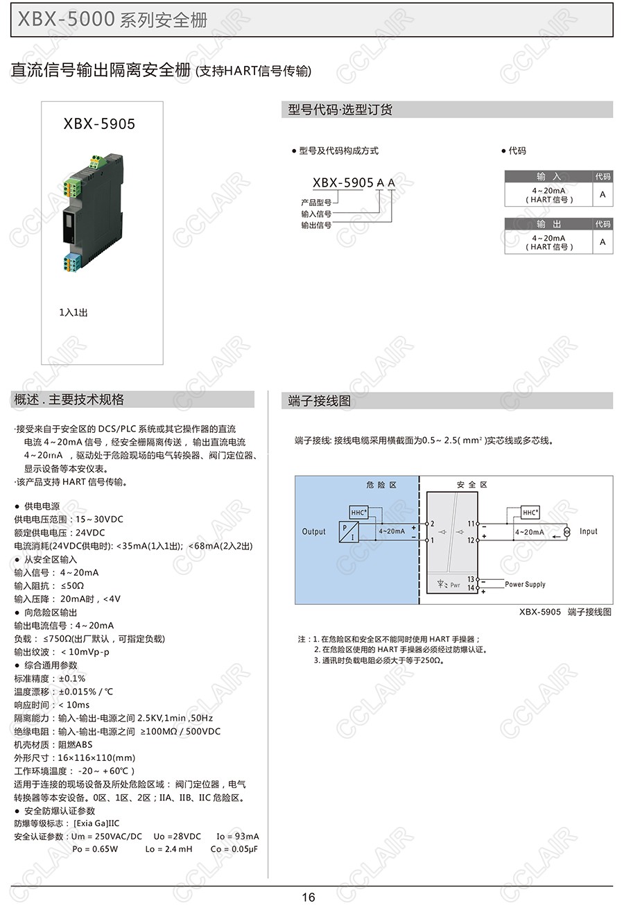 XBX-5905,XBX-5905AA,直流信號輸出隔離安全柵(支持HART信號傳輸)(一入一出