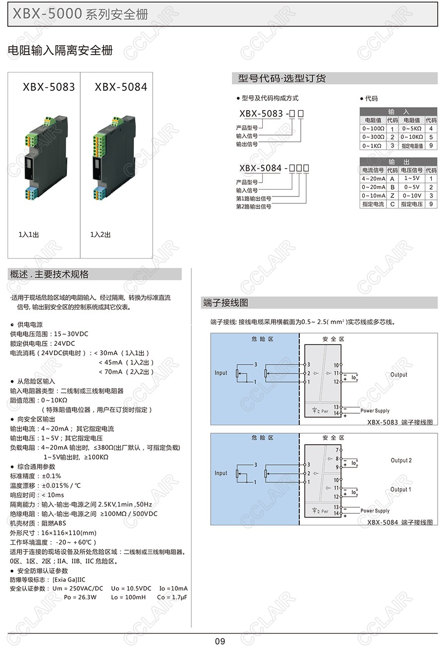 XBX-5083,XBX-5083-1A1,XBX-5083-2A1,電阻輸入隔離安全柵(一入一出、一入二出)