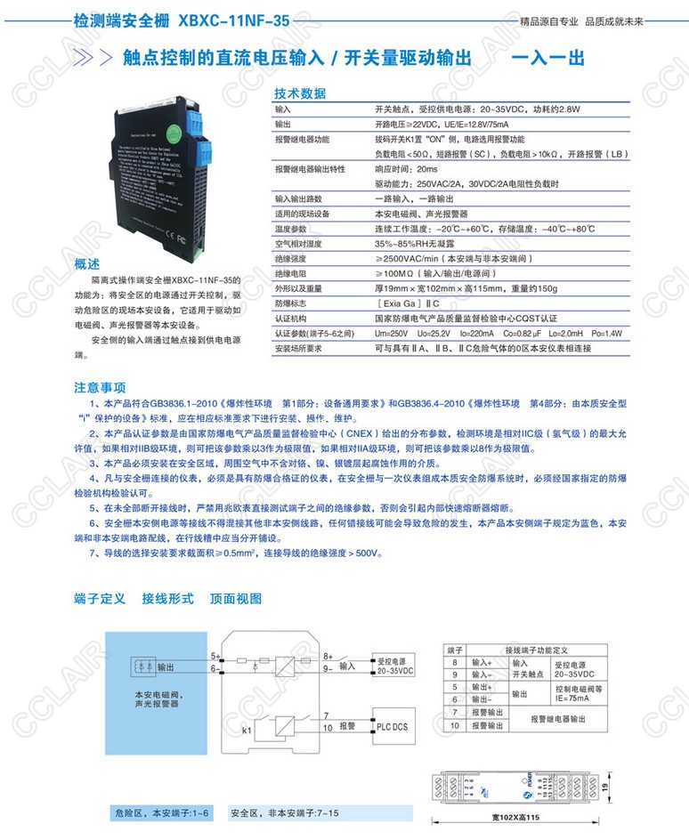 XBXC-11NF-35,檢測(cè)端安全柵開(kāi)關(guān)量驅(qū)動(dòng)輸出(一入一出)