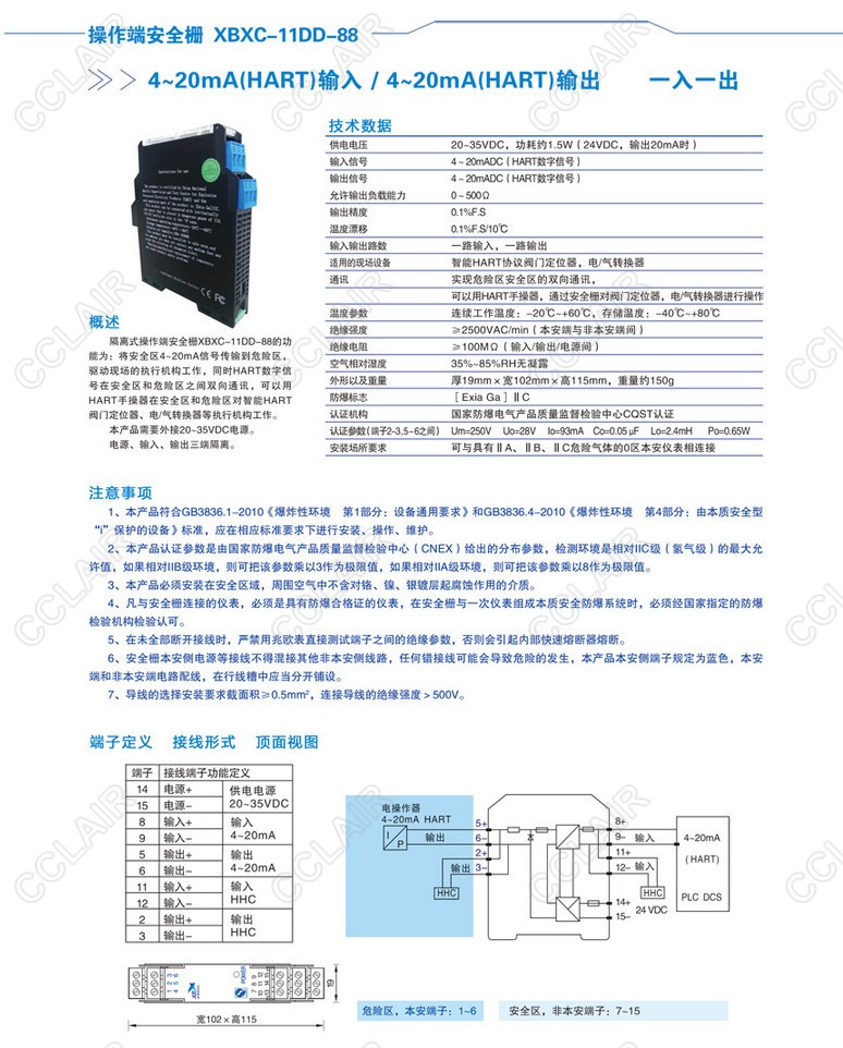 XBXC-11DD-88操作端安全柵模擬量驅(qū)動輸出(HART)(一入一出)