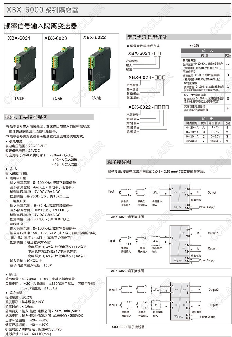 XBX-6021,XBX-6021AA,XBX-6021BB,XBX-6021CC頻率信號(hào)輸入隔離變送器(一入一出、一入二出、二入二出)