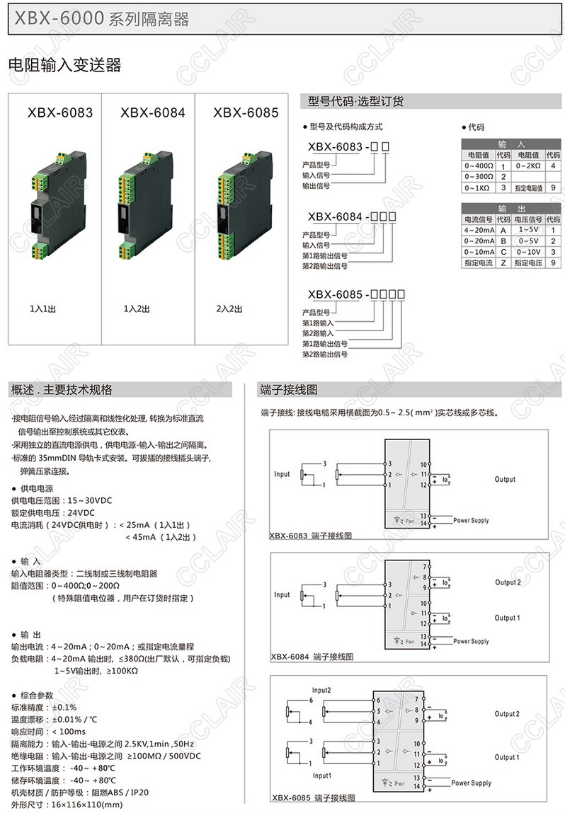 XBX-6083,XBX-6083-1A,XBX-6083-2A,XBX-6083-3A,電阻輸入隔離變送器(一入一出、一入二出、二入二出)