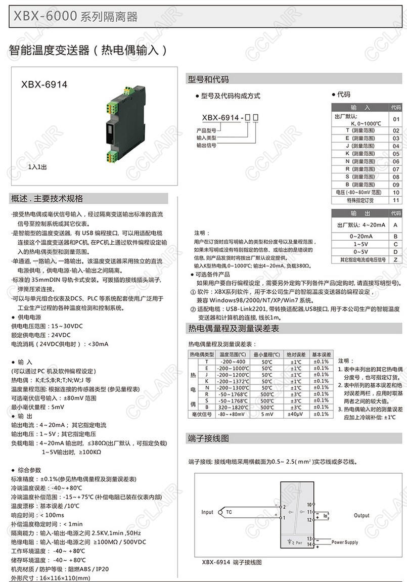 XBX-6914,XBX-6914-04A,XBX-6914-04B,XBX-6914-04C,智能溫度變送器(熱電偶輸入)(一入一出)