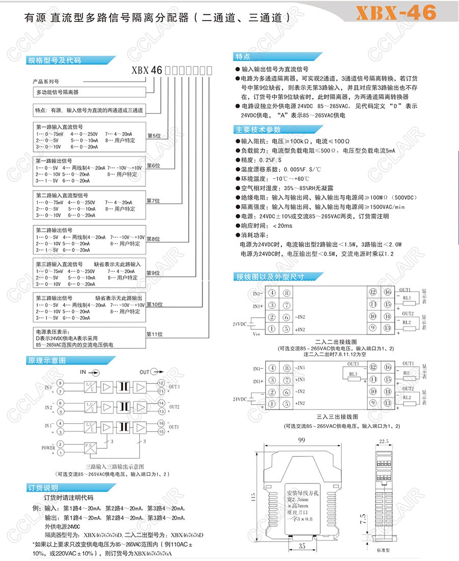 XBX-46-222222,XBX-46-333333,XBX-46-444444,有源直流型多路信號隔離分配器(二通道 三通道)