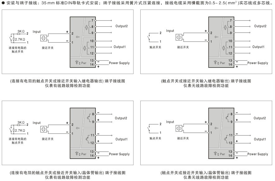 可選擇帶有輸入線路故障檢測(cè)功能的開(kāi)關(guān)量輸入隔離器和沒(méi)有線路故障檢測(cè)功能的開(kāi)關(guān)量輸入隔離器。
