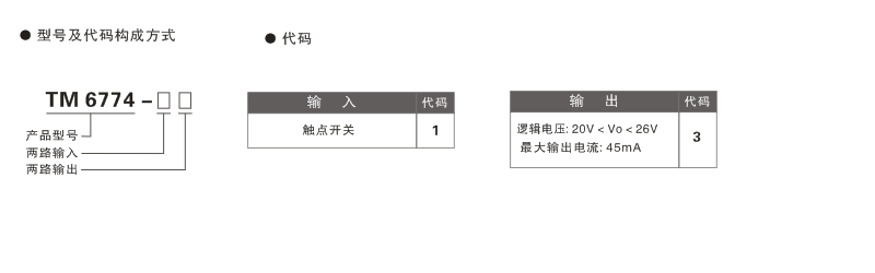 TM6774開關(guān)量輸出二線制隔離器選型、訂貨代碼