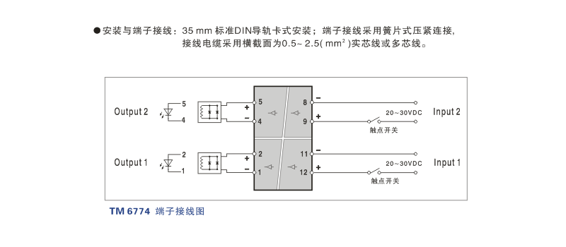 TM6774開關(guān)量輸出二線制隔離器端子接線圖