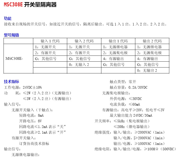 MSC308E-G111,MSC308E-G211,MSC308E-GG11,MSC308E-G011,開(kāi)關(guān)量隔離器