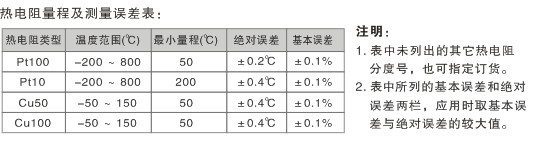 標準精度:±0.1%(參見熱電阻量程及測量誤差表)