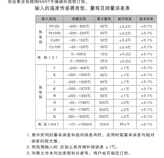 標(biāo)準(zhǔn)精度:±0.1%(參見溫度傳感器類型、量程及測量誤差表)