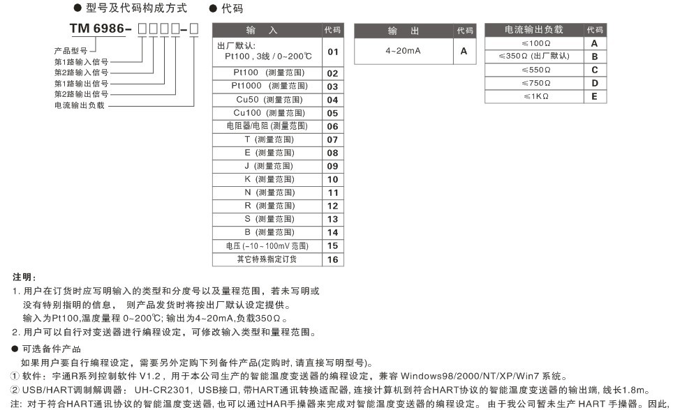 TM6986 熱電阻/熱電偶通用輸入,智能HART溫度變送器 二入二出特性