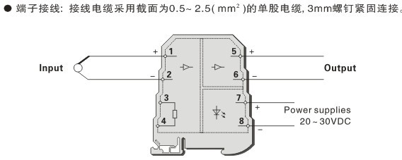 采用獨立的直流電源供電方式, 供電電源 -輸入- 輸出之間隔離。