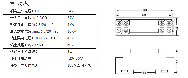 WS-FL-1525變送器信號(hào)防雷器適用于接收4-20mA變送器信號(hào)的防雷領(lǐng)域。端口設(shè)計(jì)為最大放電電流(8/20μs)10KA。