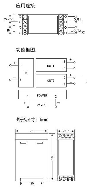 將輸入信號(hào)變換為二路相互隔離的信號(hào);低功耗 低熱量 低漂移;DIN T型導(dǎo)軌安裝、接線端子可插拔。