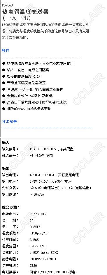 PS9060熱電偶溫度變送器(一入一出)