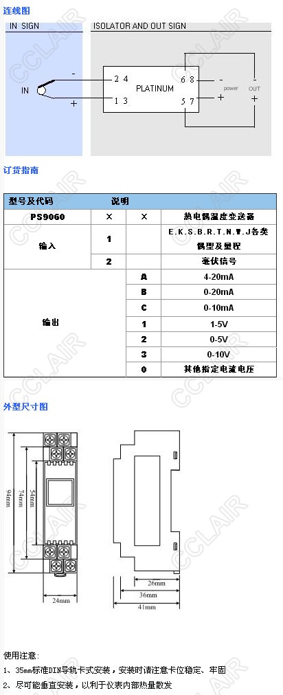 PS90601A,PS90601B,PS90601C,PS906011,PS9060熱電偶溫度變送器(一入一出)
