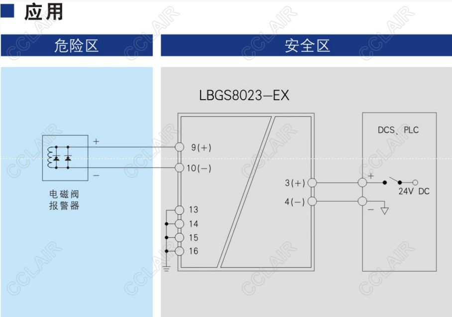 具有防雷擊浪涌保護功能的開關量輸出安全柵。它的功能是將安全區(qū)的電源通過開關控制,驅動危險區(qū)的現(xiàn)場本安設備,它適用于驅動如電磁閥、聲光報警器等一些小功率本安設備。輸入輸出隔離,允許控制開關直接連到24DC供電回路的任一端。