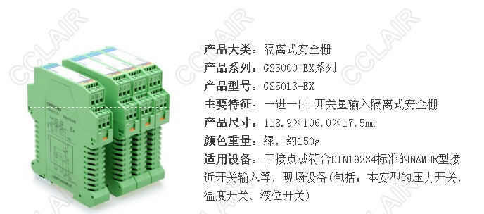開(kāi)關(guān)量輸入隔離式安全柵,接收來(lái)自危險(xiǎn)區(qū)的干接點(diǎn)或符合DIN19234標(biāo)準(zhǔn)的NAMUR型接近開(kāi)關(guān)輸入, 通過(guò)安全柵隔離傳輸?shù)桨踩珔^(qū)晶體管輸出,它具有輸入斷線檢測(cè)報(bào)警指示及輸入輸出反相設(shè)置功能。該產(chǎn)品需要獨(dú)立供電,電源、輸入和輸出三隔離。
