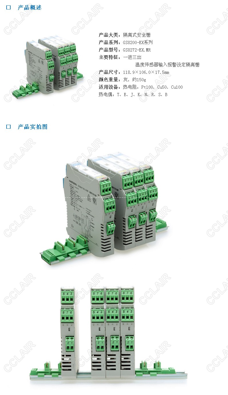 溫度傳感器輸入,繼電器、RS485輸出報警設(shè)定隔離柵。將危險側(cè)的熱電阻、熱電偶信號轉(zhuǎn)換成數(shù)字信號通過RS485信號輸出,采用MODBUS-RTU協(xié)議組成網(wǎng)絡(luò)。它具有報警設(shè)定功能,可根據(jù)用戶設(shè)定報警點(diǎn)由繼電器報警輸出。通訊和電源可選擇導(dǎo)軌或端子連接方式。