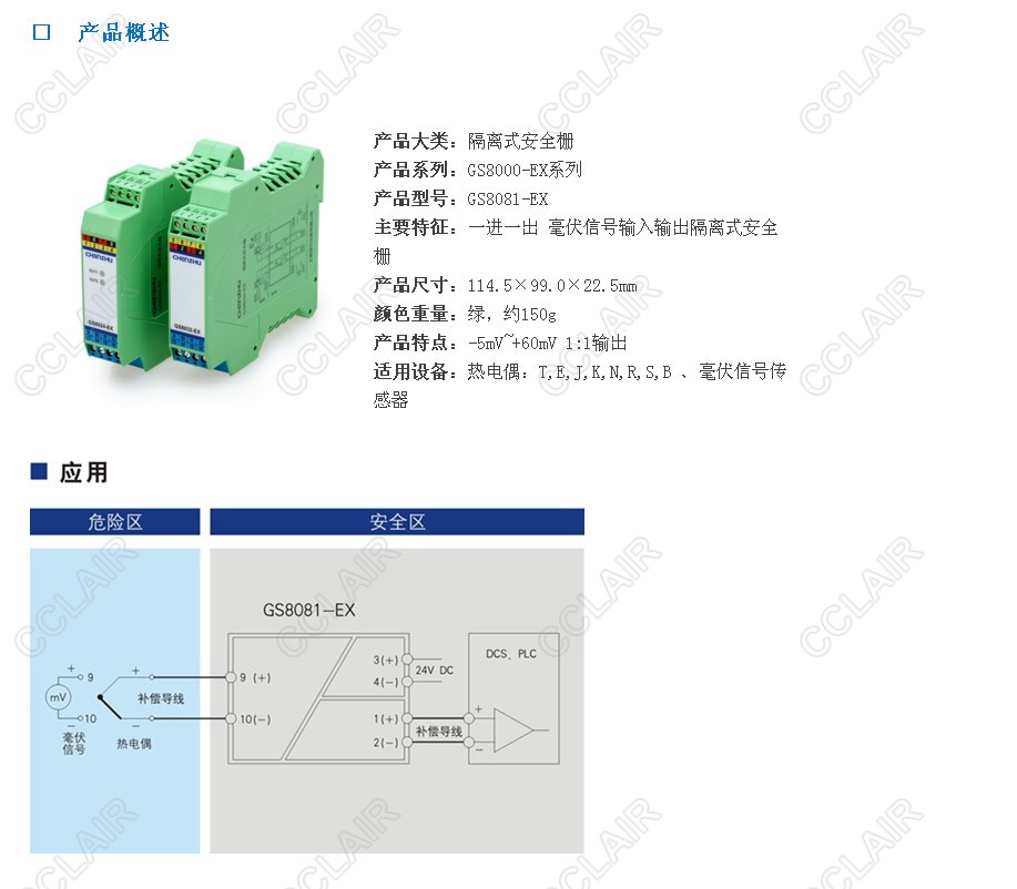 一進一出 毫伏信號輸入輸出隔離式安全柵 將現(xiàn)場低電平直流信號1:1隔離傳輸?shù)桨踩珎容敵?。該產(chǎn)品需要獨立供電,電源、輸入和輸出三隔離,適用于帶外部冷端補償?shù)臒犭娕肌?/p>