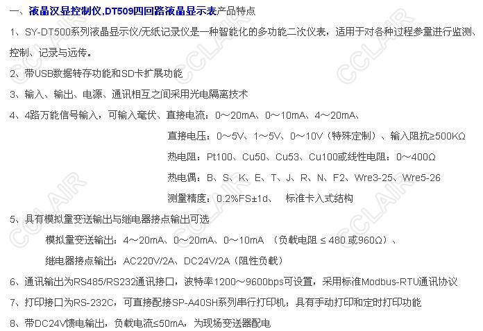 SY-DT509Y,SY-DT509R,SY-DT509YT,SY-DT509RT,SY-DT509YS,DT509四回路液晶顯示控制儀