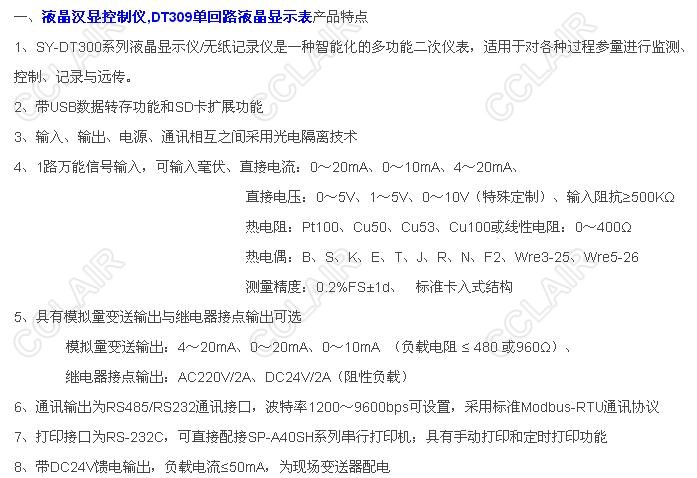 SY-DT309Y,SY-DT309R,SY-DT309YT,SY-DT309RT,SY-DT309YS,DT309單回路液晶顯示控制儀