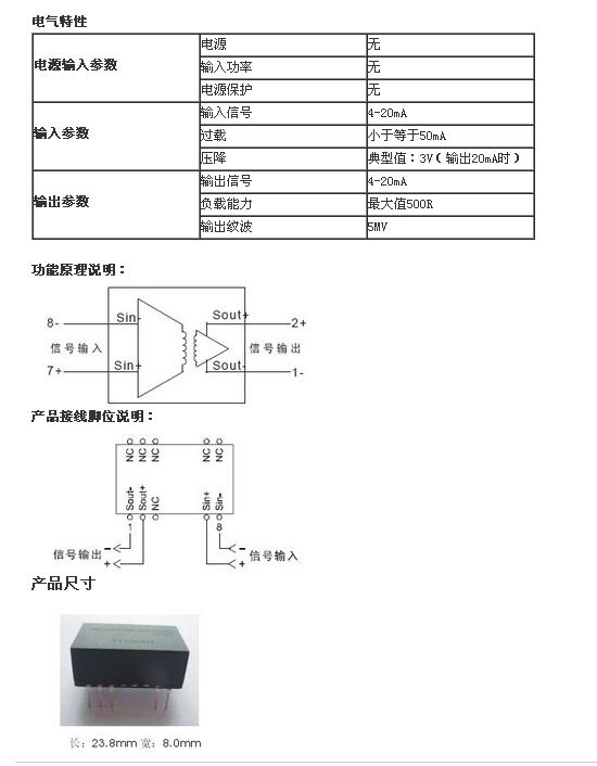 4-20mA 信號(hào)輸入、輸出3000VDC高隔離