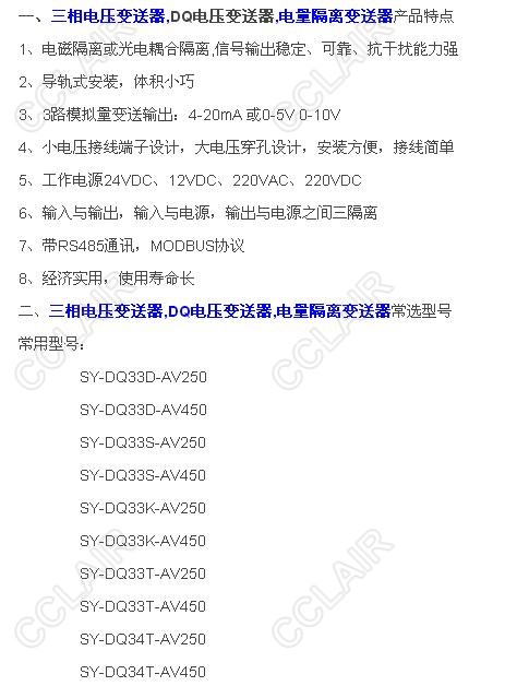 SY-DQ33D-AV250,SY-DQ33D-AV450,SY-DQ33S-AV250,SY-DQ33S-AV450,DQ電壓隔離變送器