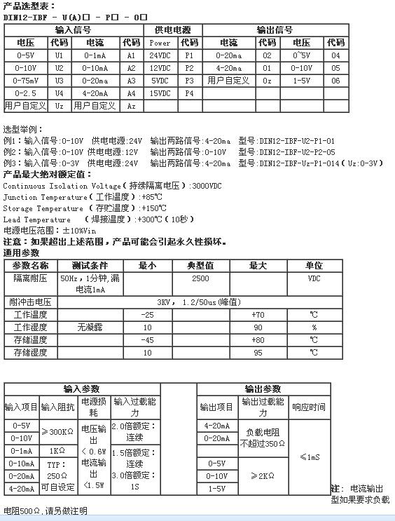DIN12, DIN12-IBF-U2-P1-O1,DIN12-IBF-U2-P2-O5,模擬信號(hào)隔離變送器.