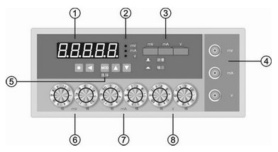 ⑤  顯示檔位選擇           ⑥  mV檔輸出調(diào)整
