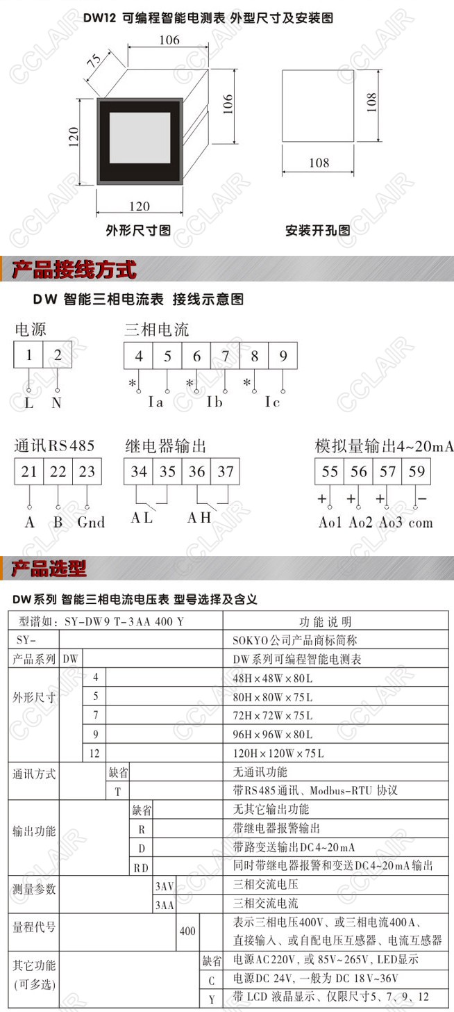 SY-DW12-3AA400,SY-DW12-3AA400C,SY-DW12-3AA400Y,DW12-3AA400,DW12三相數(shù)字電流表