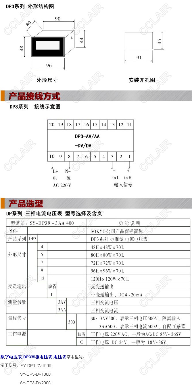 SY-DP3-DV100,SY-DP3-DV100D,SY-DP3-DV200C,DP3-DV100,DP3-DV100D,DP3直流電壓表
