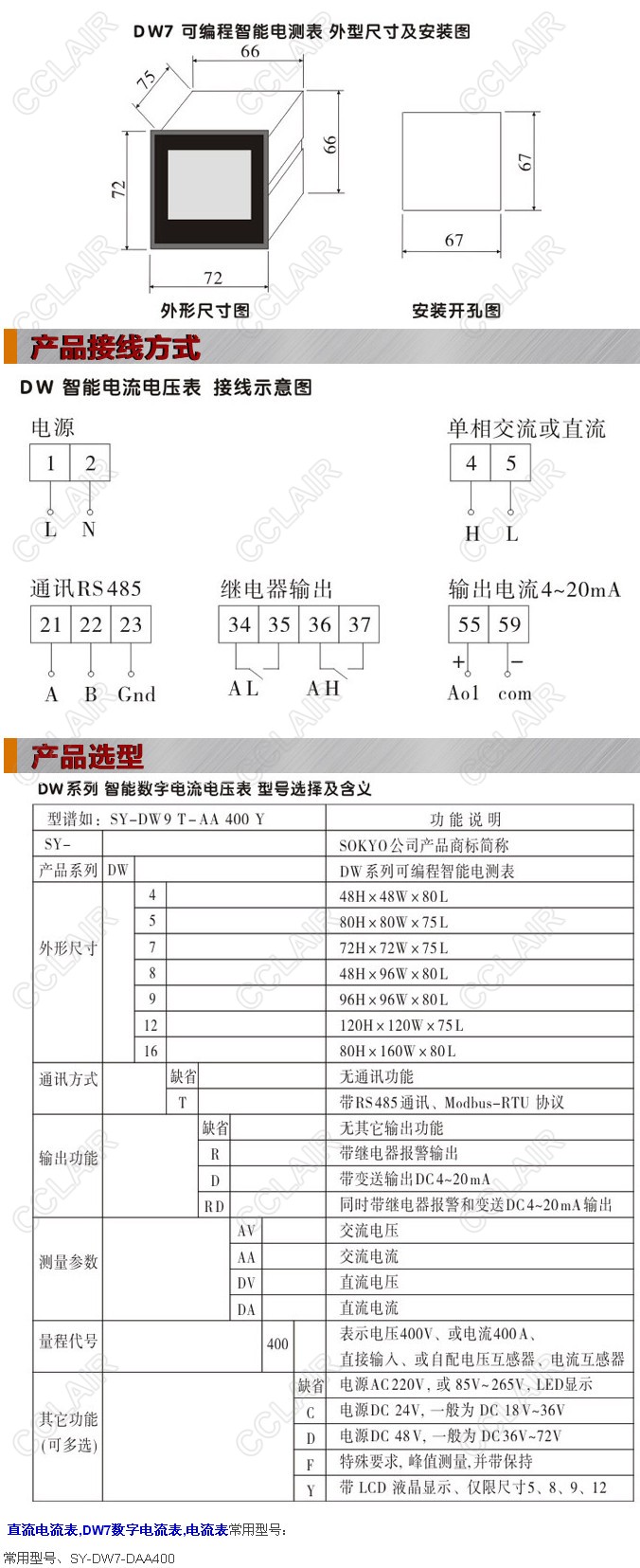 SY-DW7-DA400,SY-DW7-DA400C,SY-DW7-DA400D,DW7-DA400,DW7-DA400C,DW7數(shù)字電流表