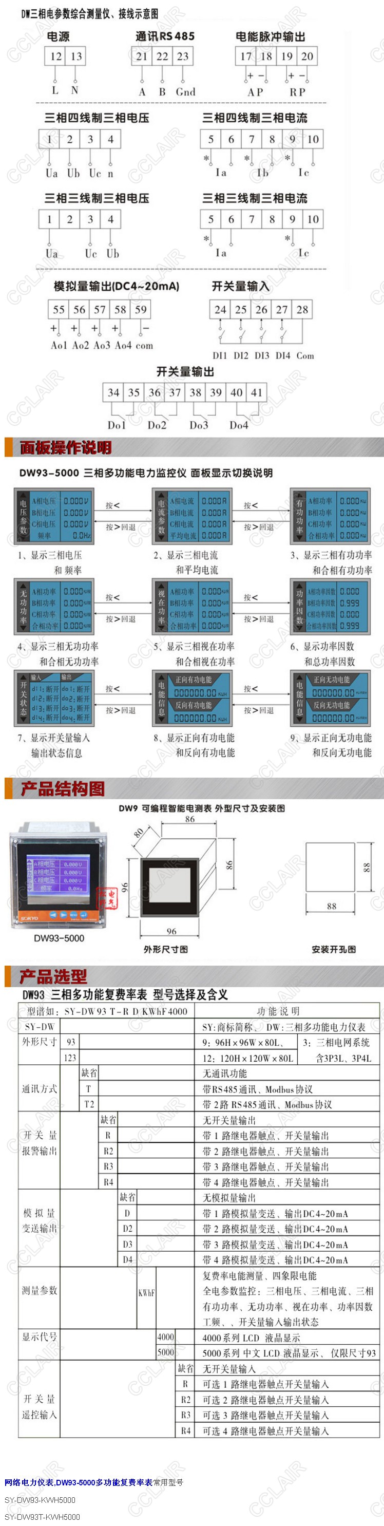SY-DW93-KWhF5000,SY-DW93-DKWhF5000,DW93-KWhF5000,DW93-5000多功能復費率表