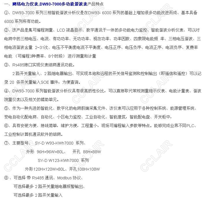 SY-DW93-KWh7000,SY-DW93-DKWh7000,DW93-KWh7000,DW93-7000多功能諧波表