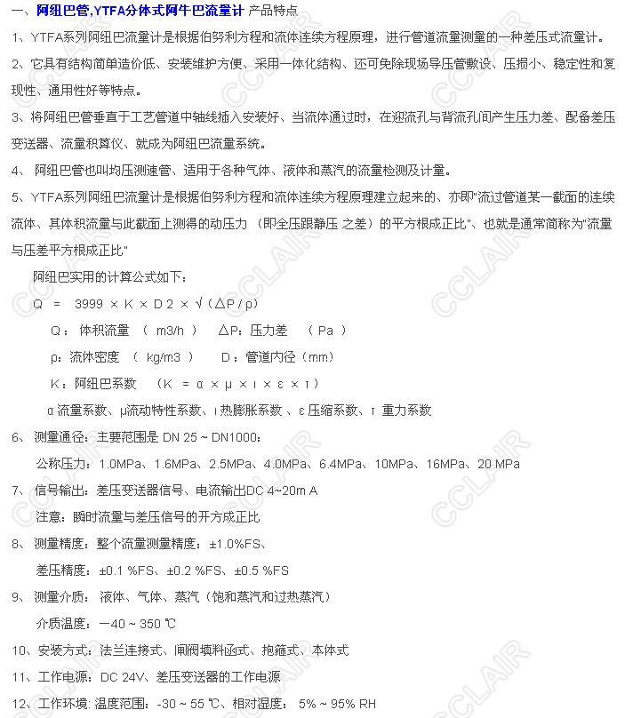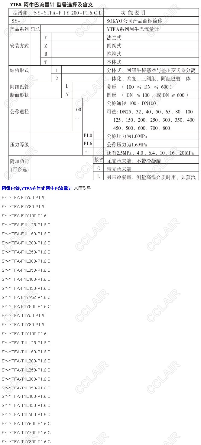 SY-YTFA-F1Y50-P1.6,SY-YTFA-F1Y80-P1.6,YTFA-F1Y100-P1.6,YTFA分體式阿牛巴流量計(jì)