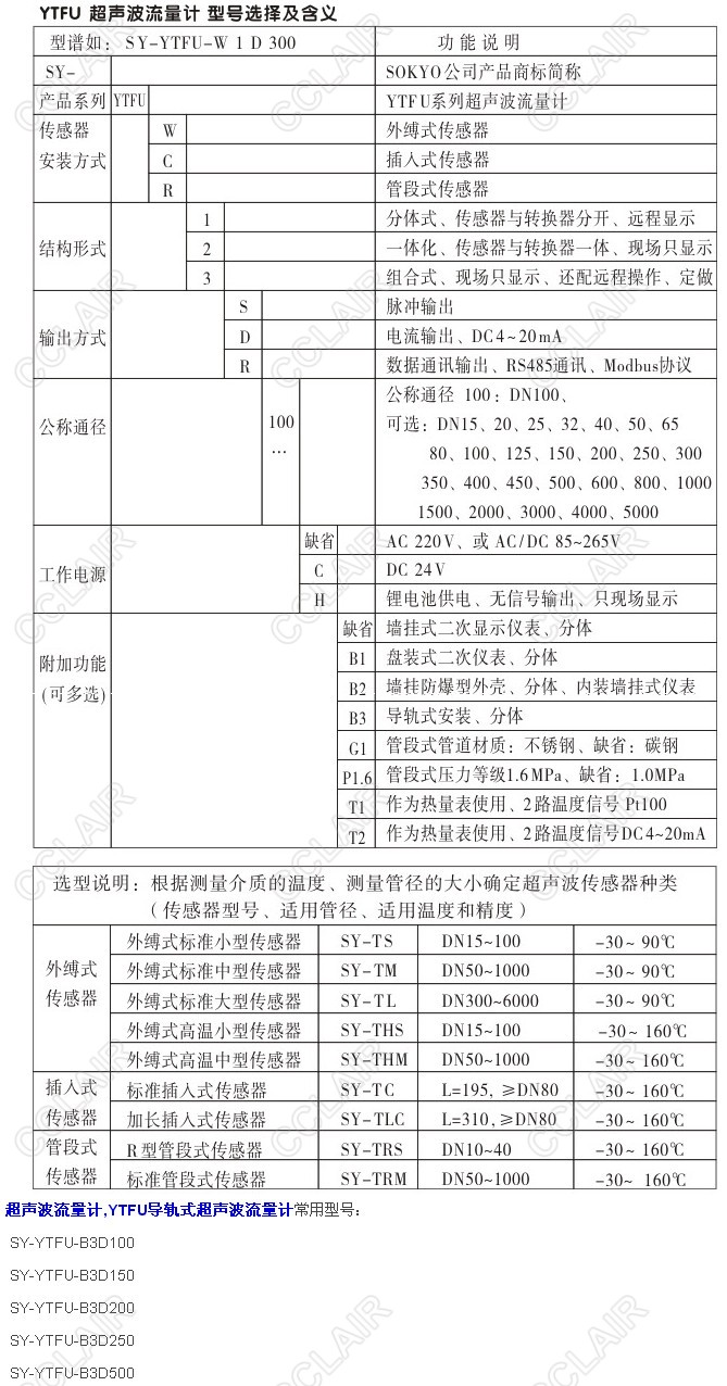 SY-YTFU-B3D100,SY-YTFU-B3D150,SY-YTFU-B3D200,YTFU導軌式超聲波流量計