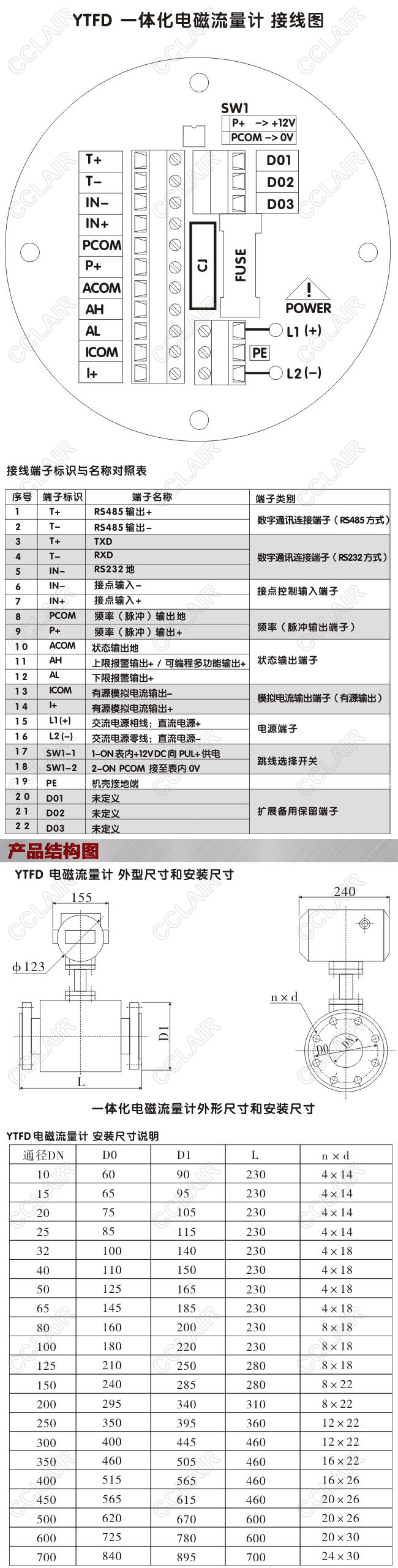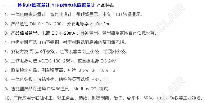SY-YTFD-F2E25-11GA,SY-YTFD-F2E40-11GA,SY-YTFD-F2E50-11GA,YTFD污水電磁流量計