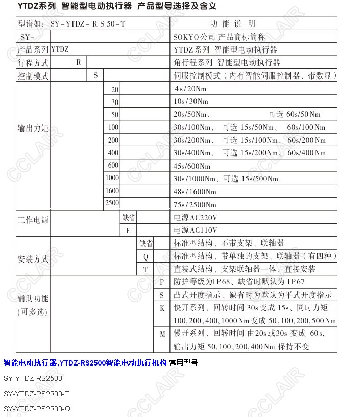 SY-YTDZ-RS2500,SY-YTDZ-RS2500-T,SY-YTDZ-RS2500-Q,YTDZ-RS2500智能電動執(zhí)行機構(gòu)