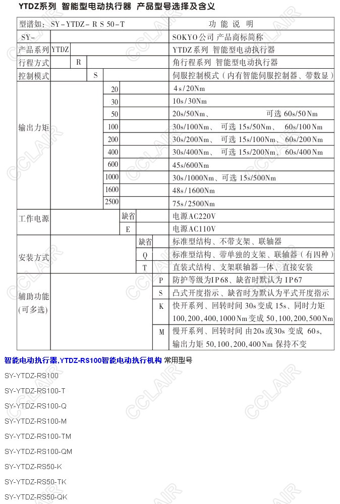 SY-YTDZ-RS100,SY-YTDZ-RS100-T,SY-YTDZ-RS100-Q,YTDZ-RS100智能電動(dòng)執(zhí)行機(jī)構(gòu)
