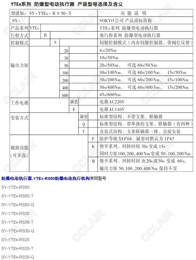 SY-YTEX-RS50,SY-YTEX-RS50-T,SY-YTEX-RS50-Q,YTEX-RS50防爆電動(dòng)執(zhí)行機(jī)構(gòu)