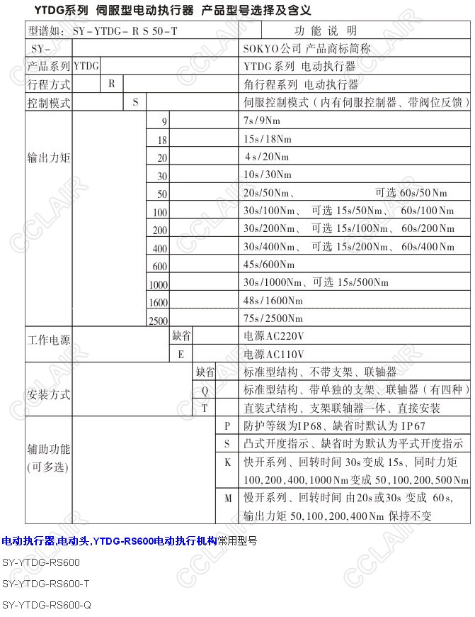 SY-YTDG-RS600,SY-YTDG-RS600-T,SY-YTDG-RS600-Q,YTDG-RS600電動執(zhí)行機構