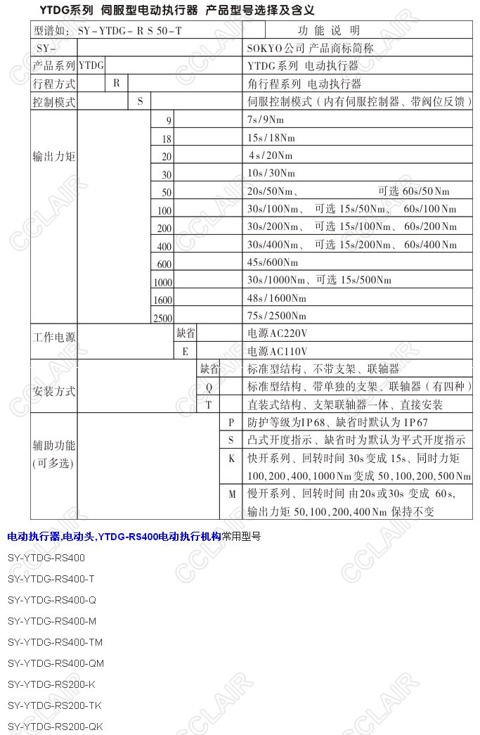SY-YTDG-RS400,SY-YTDG-RS400-T,SY-YTDG-RS400-Q,YTDG-RS400電動(dòng)執(zhí)行機(jī)構(gòu)