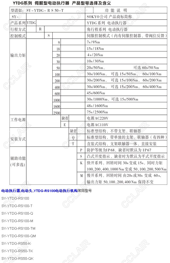 SY-YTDG-RS100,SY-YTDG-RS100-T,SY-YTDG-RS100-Q,YTDG-RS100電動執(zhí)行機構(gòu)