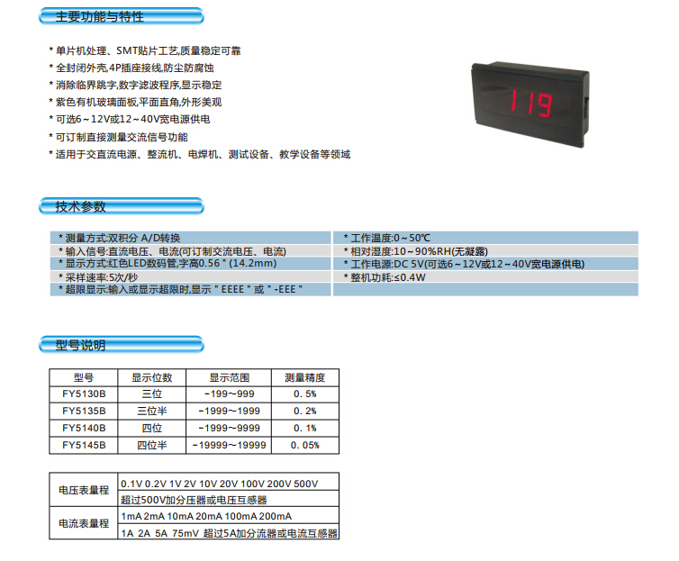 FY5140B四位數(shù)字面板表