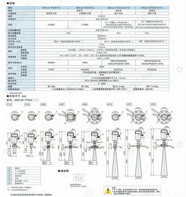26GHz,MWLM-PR26,26GHz脈沖雷達式料位計(測量固體料位用)