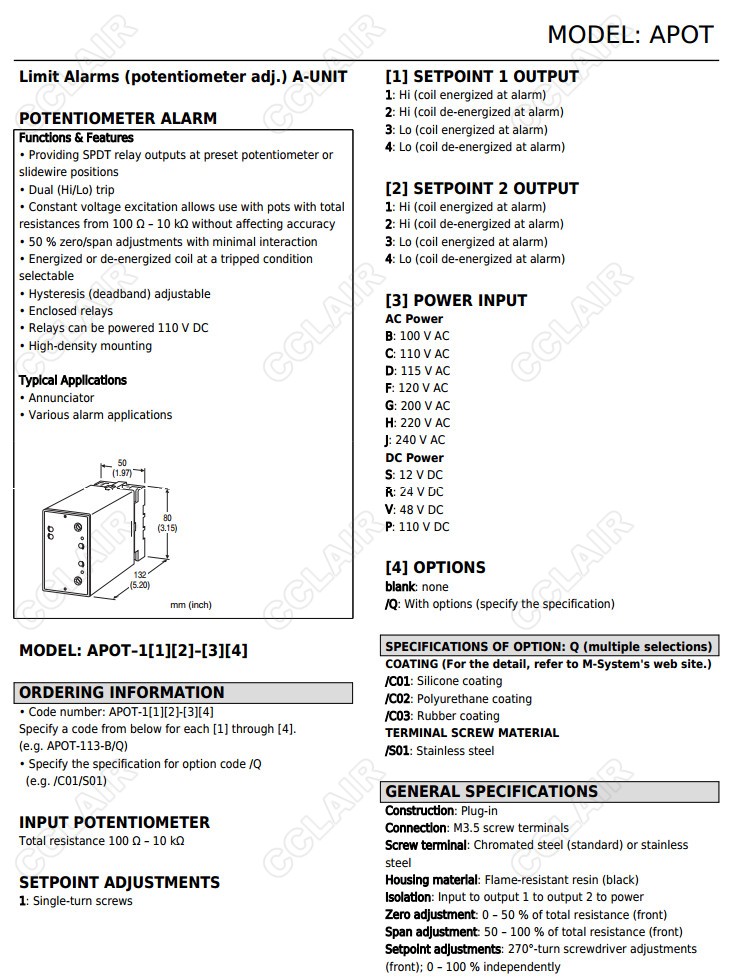APOT,APOT-113-B/Q,APOT-111,APOT-112,APOT-113,APOT-114,電位器信號報警器
