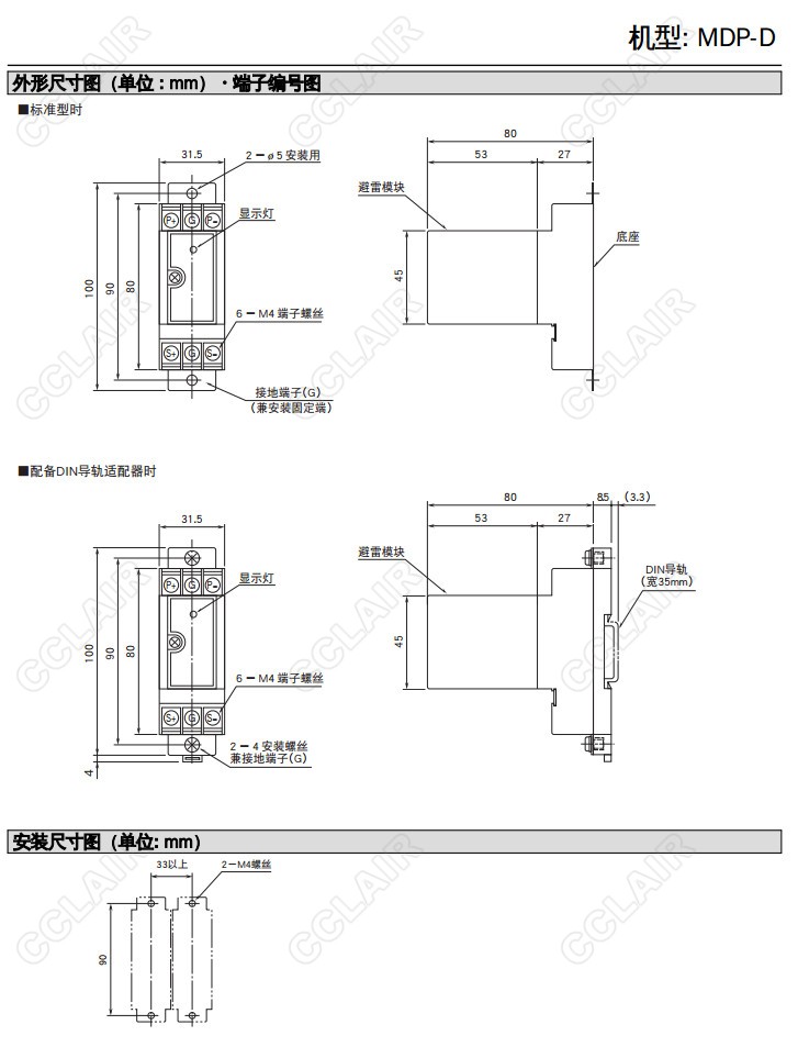 MDP-D12/MDP-D24,直流電源用 最大負載1A 插入型避雷器