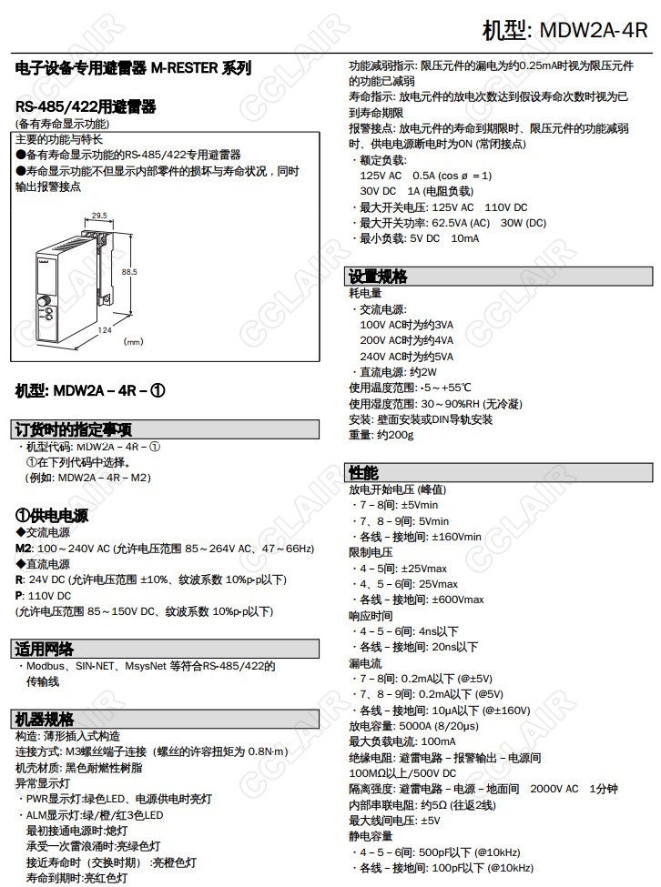 MDW2A-4R, MDW2A-4R-M2,MDW2A-4R-R,MDW2A-4R,MDW2A-4R-P, RS-485/RS-422
