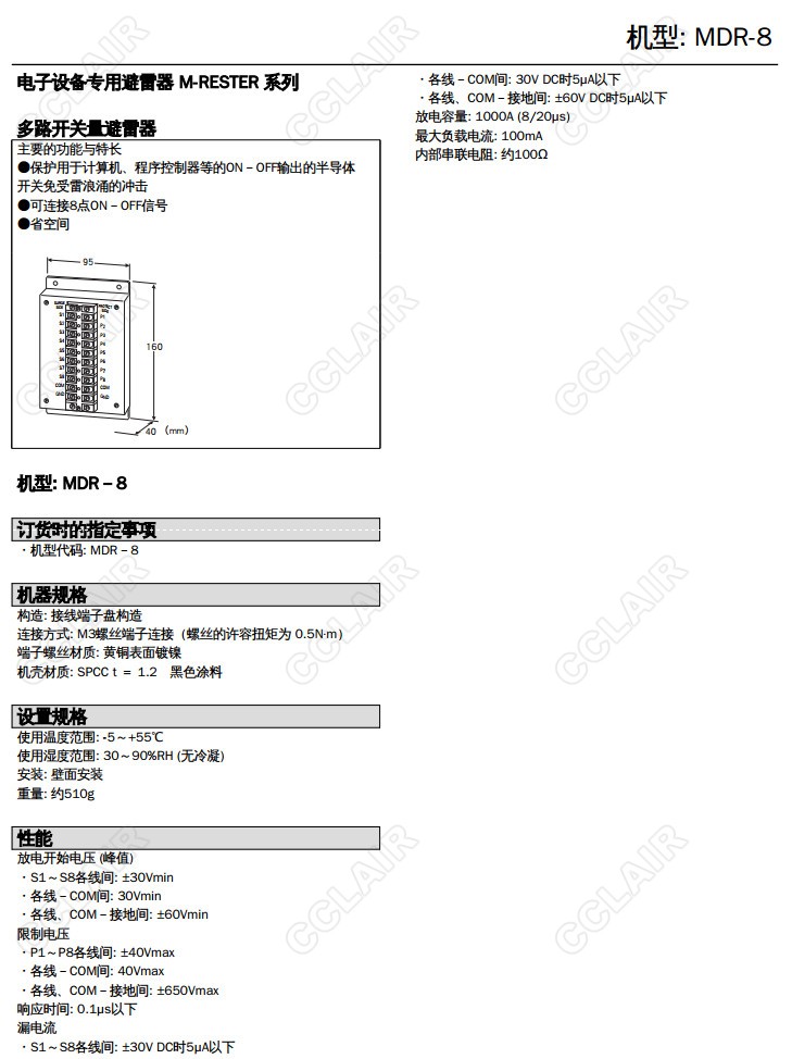 MDR-8 ,8點ON-OFF信號用 端子盤型避雷器